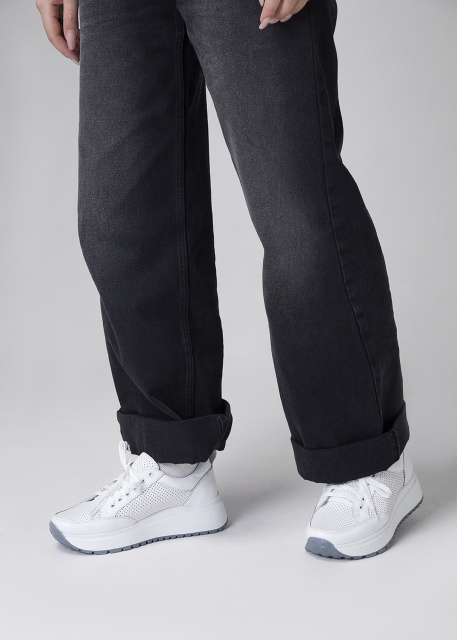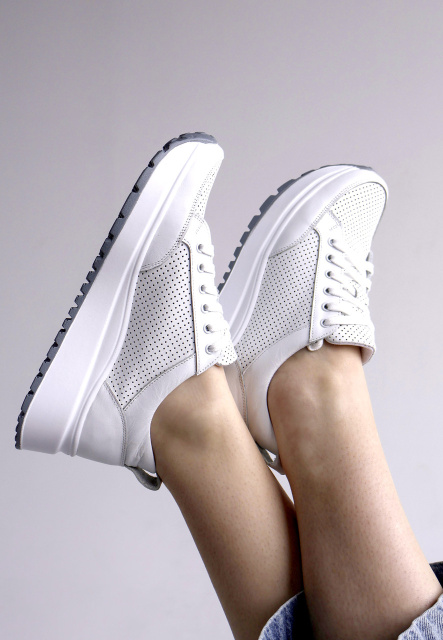 Жіночі шкіряні перфоровані кросівки білі v7-o7-38
