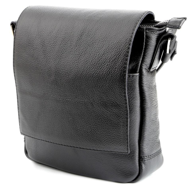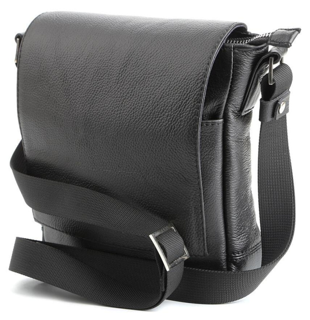 Країна виробник: Україна. Компактна чоловіча шкіряна сумка через плече українського виробництва. Шкіра, з якої виконаний даний аксесуар, приємна на дотик і має зернисту фактуру. Колір фурнітури: срібло. Сумка закривається за допомогою клапана на двох прихованих магнітах і металевою блискавкою. Під клапаном розташована накладна кишеня. На задній зовнішній стороні даного аксесуара знаходиться відділення на блискавці. Сумка носитися через плече за допомогою регульованого текстильного плечового ременя. Всередині:
