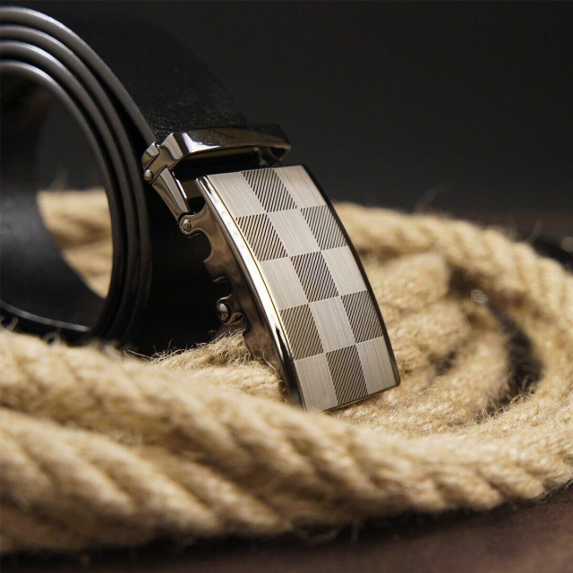Довжина: 105-120 см (регулюється в меншу сторону) Стильний чоловічий ремінь з натуральної шкіри найвищої якості. Виконано аксесуар з цільного полотна. Дизайн ременя продуманий до дрібниць і відповідає всім модним тенденціям. Доповнено ремінь оригінальною пряжкою з міцного сплаву сріблястого кольору і тисненням у вигляді шахової дошки. Автоматичний ремінець дуже практичний. Виробництво - фабричний Китай. Шкіряний ремінь - кращий вибір для подарунка близькій людині. ОПЛАТА та ДОСТАВКА : накладний платіж з передоплатою 200 грн.Терміни відправлення : 1-3 робочих днів