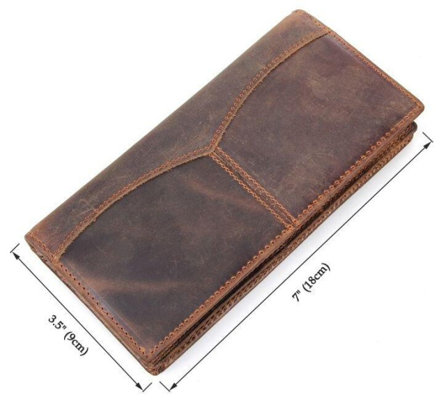 Розміри (ШхВ, см): 9х18. Сучасний чоловічий купюрник з натуральної високоякісної винтажной шкіри. Гаманець надійно прошитий надміцної ниткою коричневого кольору. Шви рівні, акуратні. Аксесуар упакований в текстильний пилозахисний чохол. Всередині: - 3 відділення для банкнот; - 8 відділень для карток; - 2 відділення для прав під плівкою; - потаємне відділення на блискавці. ОПЛАТА та ДОСТАВКА : накладний платіж з передоплатою 200 грн.Терміни відправлення : 1-3 робочих днів