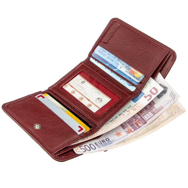 - закривається гаманець на кнопку. Оригінальний шкіряний гаманець для жінок, які не любить великі і громіздкі гаманці. Це аксесуар має не великий розмір і з легкістю поміститься в дамську сумочку будь-яких розмірів, в тому числі і в зовсім маленький жіночий клатч або сумку на пояс, що дуже популярно в наші дні. Виріб виконаний в привабливому темно-червоному кольорі з матовою фактурою. Має достатню кількість відділень, щоб виконувати свої основні функції, в ньому є місце для купюр, монет або інших дрібних цінностей і місце для карток і візиток. Закривається гаманець на зручну і просту кнопку, що дозволяє його швидко відкривати. Упакований аксесуар в фірмову білу коробку з логотипом виробника. ОПЛАТА та ДОСТАВКА : накладний платіж з передоплатою 200 грн.Терміни відправлення : 1-3 робочих днів