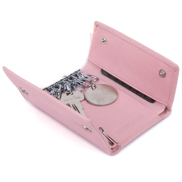 Чудовий гаманець-ключниця для жінок з натуральної шкіри високої якості ніжного рожевого кольору. Ключниця дуже зручна у використанні і захистить ваші кишені від дірок, які здатні зробити ключі. Аксесуар має повноцінне відділення для купюр, маленьку кишеньку на блискавці. У ключниці є шість карабінів для стандартних ключів. Даний гаманець легко поміститься в будь-яку навіть найменшу сумку або кишеню. А також може використовуватися як самостійний аксесуар. Закривається дана ключниця на дві кнопки. Прекрасно підійде на подарунок для дівчини будь-якого віку. Упаковано в фірмову коробку білого кольору. ОПЛАТА та ДОСТАВКА : накладний платіж з передоплатою 200 грн.Терміни відправлення : 1-3 робочих днів