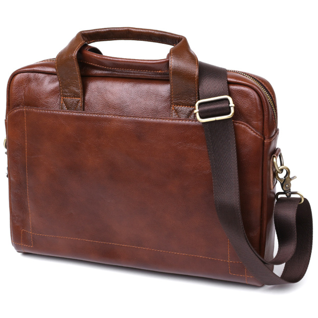 - текстильний ремінь для перенесення на плечі. Добротна сумка-портфель для стильних та сучасних чоловіків. Виконано модель з натуральної висококласної шкіри, якість якої видно неозброєним оком. Фактура виробу – зерниста з легким блиском. Внутрішнє наповнення представлене просторим відділенням з додатковими кишенями, а також на зовнішніх сторонах передбачені додаткові кишені на кнопках. ОПЛАТА та ДОСТАВКА : накладний платіж з передоплатою 200 грн.Терміни відправлення : 1-3 робочих днів