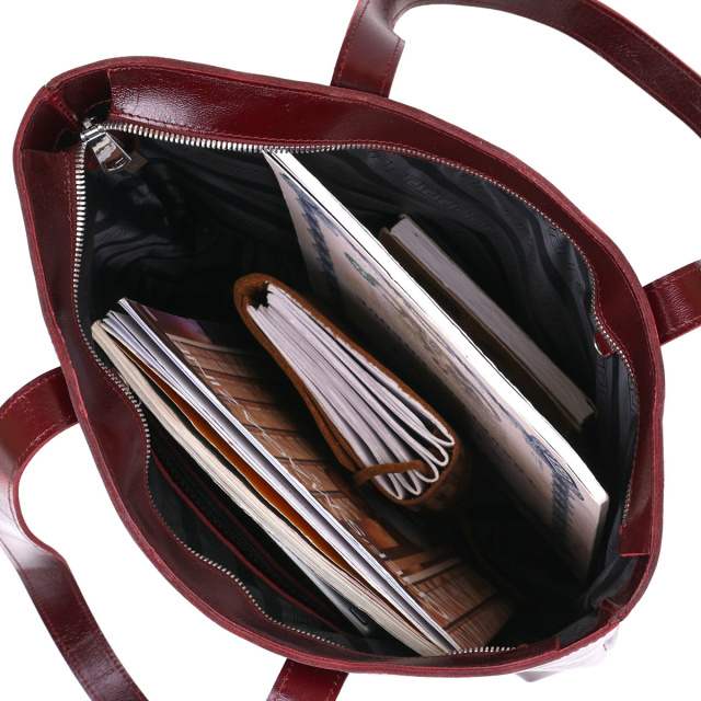 - 2 шкіряні ручки. Чудова містка сумка жіноча з щільної висококласної натуральної шкіри з відмінними показниками зносостійкості. Сумка має одне просторе відділення та невелику потайну кишеню на блискавці всередині. Закривається також на блискавку. Колір виробу – насичений бордовий з легким переливом, фактура – гладка та дуже приємна на дотик. ОПЛАТА та ДОСТАВКА : накладний платіж з передоплатою 200 грн.Терміни відправлення : 1-3 робочих днів