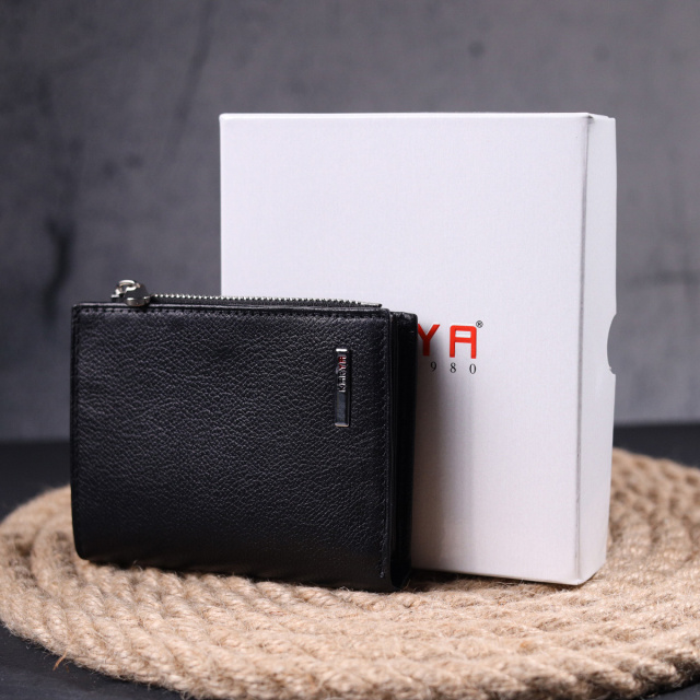 - виріб упакований у фірмову коробку. Чудовий компактний гаманець із натуральної шкіри високої якості, виріб класичного чорного кольору. Усередині є відділення для купюр, десять осередків для кредитних карток, монетниця на блискавці та чотири приховані кишені. У виробі використано якісну фурнітуру, а також міцну фірмову підкладку. Закривається модель у дві додавання на кнопку. ОПЛАТА та ДОСТАВКА : накладний платіж з передоплатою 200 грн.Терміни відправлення : 1-3 робочих днів