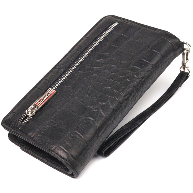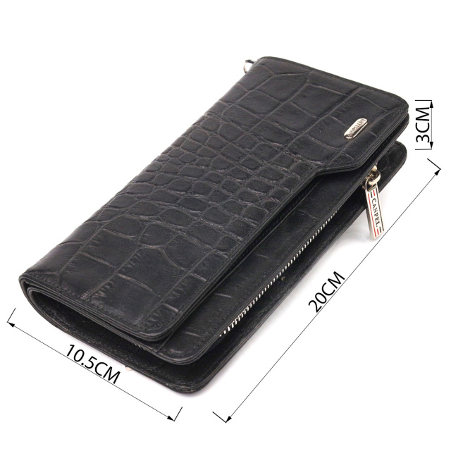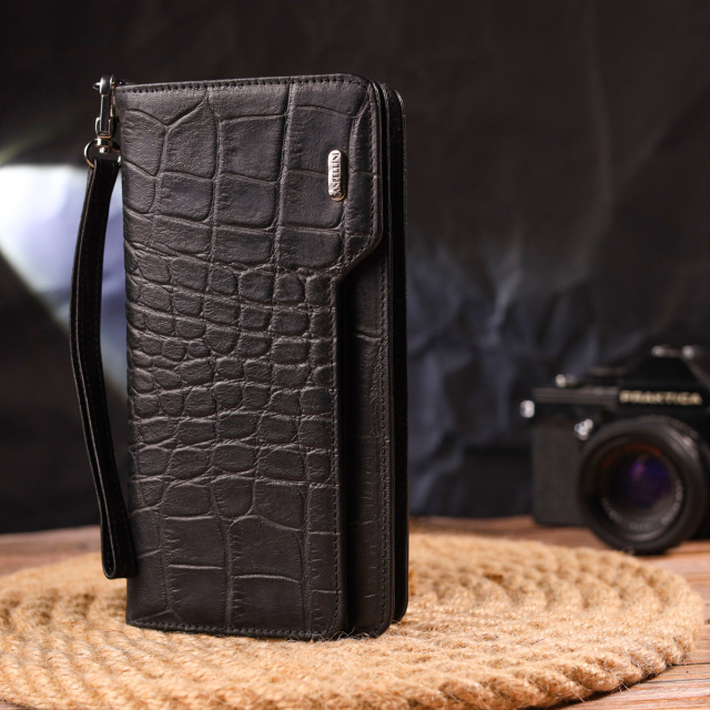 - гаманець упакований у фірмову коробочку. Практичний гаманець-клатч, з натуральної фактурної шкіри, з тисненням під крокодила. Аксесуар має одне основне відділення, в яке поміщаються купюри всіх номіналів, дванадцять кишень для карток, одна з яких під сіточкою, блок для карт із зовнішнього боку, дві кишеньки на блискавці, знімний кистьовий ремінь. Закривається аксесуар на блискавку, а блок для карток закривається на кнопки. Колір фурнітури – срібло. Шкіряний гаманець є дивовижним подарунком для близької людини. ОПЛАТА та ДОСТАВКА : накладний платіж з передоплатою 200 грн.Терміни відправлення : 1-3 робочих днів
