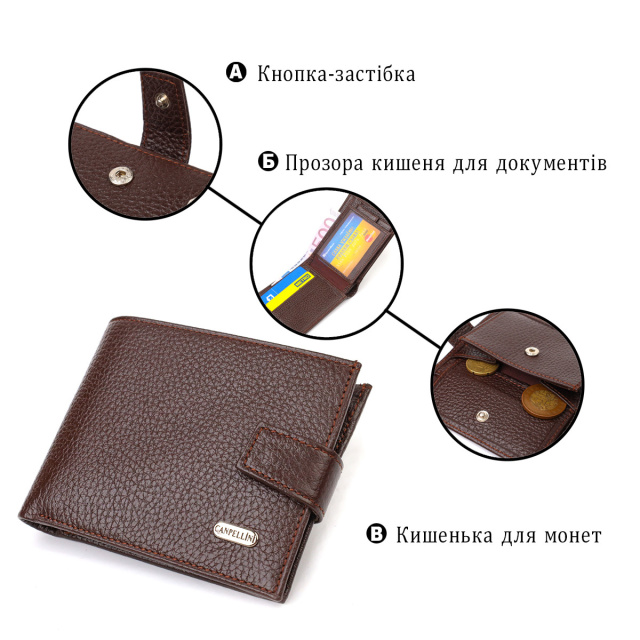 - гаманець упакований у фірмову коробочку. Стильне чоловіче портмоне середнього розміру з натуральної зернистої шкіри. Аксесуар має основне відділення для купюр з кишенею-перегородкою на блискавці, три осередки для карток, дві кишені під сіточкою, дві прилеглі кишені та монетницю. Гаманець складається навпіл, закривається хлястиком на кнопку. На лицьовій стороні в правому нижньому кутку розташований металевий логотип компанії виробника. Багатофункціональний чоловічий гаманець з дуже міцної шкіри чудовий вибір подарунка для солідного чоловіка. ОПЛАТА та ДОСТАВКА : накладний платіж з передоплатою 200 грн.Терміни відправлення : 1-3 робочих днів