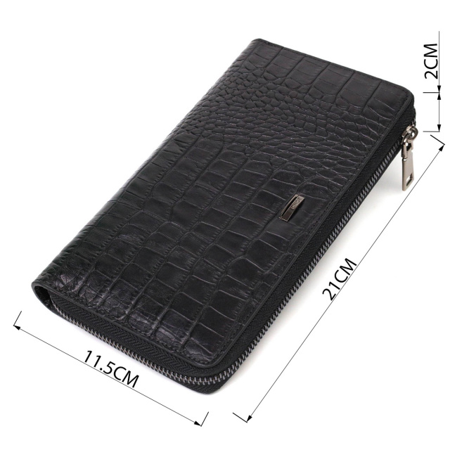 - шкіряна ручка для долоні на тильній стороні; Зручний чоловічий клатч із натуральної шкіри з тисненням під крокодила, гаманець закривається на блискавку, всередині можна без проблем розміщувати паперові банкноти, банківські картки та навіть смартфон. Аксесуар складається з двох відділень для купюр, двох прилеглих кишень, сімнадцяти слотів для кредиток та монетниці на блискавці. Є також ручка долоні на тильній стороні клатчу. Продається гаманець у гарній коробці від виробника. Якісний і надійний клатч - саме такий аксесуар повинен бути у кожної людини, що поважає себе. ОПЛАТА та ДОСТАВКА : накладний платіж з передоплатою 200 грн.Терміни відправлення : 1-3 робочих днів