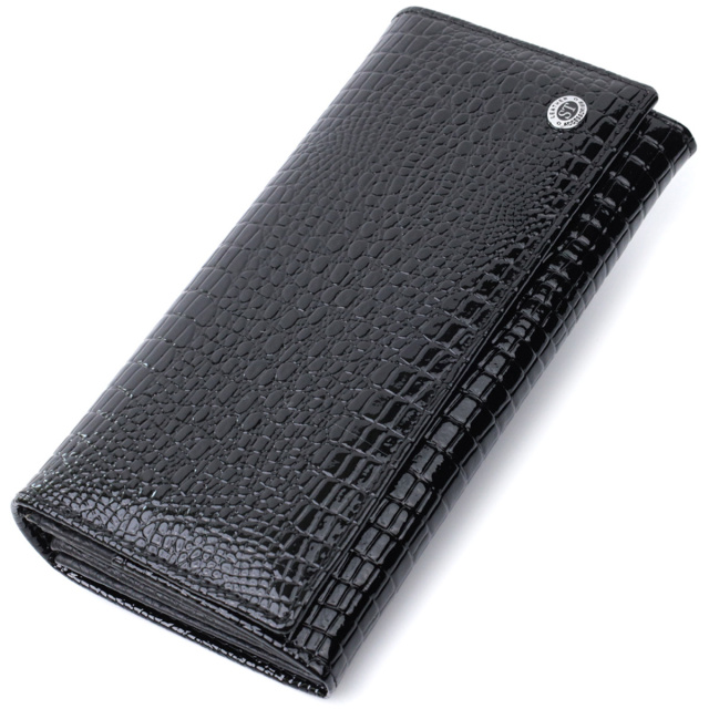 - закривається клапаном на магніт. Зручний жіночий гаманець із лакованої натуральної шкіри, з тисненням під рептилію. Така шкіра має чудові експлуатаційні характеристики. Зовні виріб прикрашений металевим логотипом компанії-виробника, що є гарантією якості. Портмоне доповнено надійною фурнітурою та міцною підкладкою. Укомплектований гаманець у фірмову картонну коробку білого кольору. Такий гаманець стане бажаним подарунком для жінок будь-якого віку та соціального статусу. ОПЛАТА та ДОСТАВКА : накладний платіж з передоплатою 200 грн.Терміни відправлення : 1-3 робочих днів