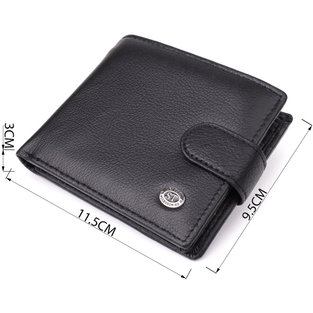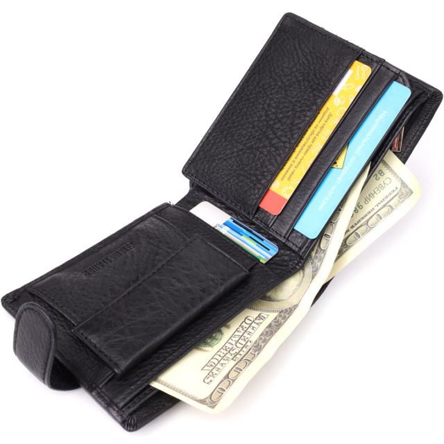 - 1 відділення для монет на кнопці. Чоловічий гаманець із застібкою в класичному подвійному додаванні — практичне та стильне рішення для повсякденного використання. Аксесуар виконаний з натуральної чорної шкіри високої якості, приємної на дотик та стійкої до зношування. Компактний зовні, але місткий усередині: у моделі передбачені відділення для банкнот, дрібниці та пластикових карток – все необхідне завжди під рукою. Дизайн підкреслено акуратним рівним рядком по канту, а в правому нижньому кутку розташований фірмовий логотип бренду — знак справжності та бездоганного виконання. ОПЛАТА та ДОСТАВКА : накладний платіж з передоплатою 200 грн.Терміни відправлення : 1-3 робочих днів