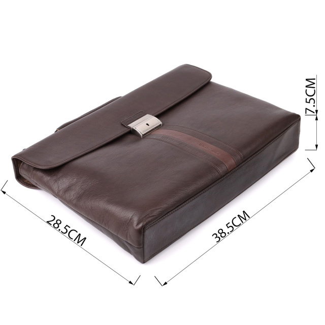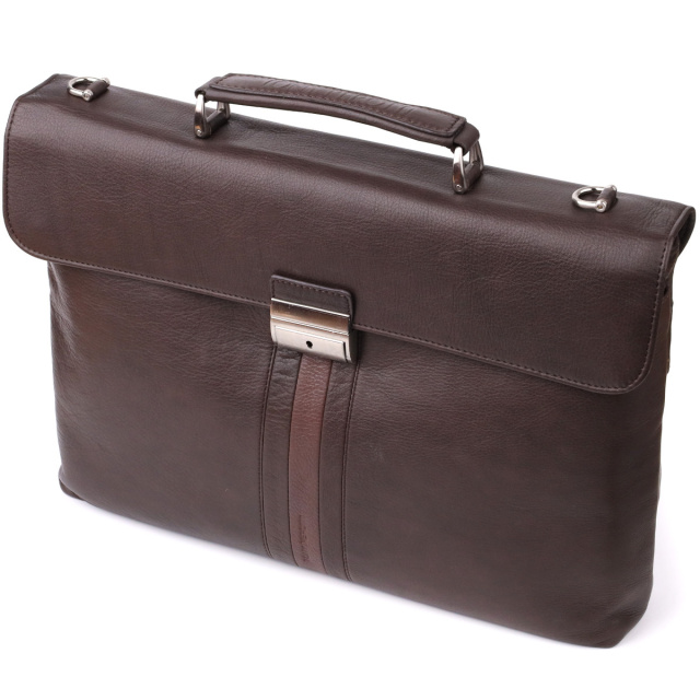 - стильний та функціональний аксесуар для роботи та повсякденного використання. Шкіряний портфель коричневого кольору з контрастною вставкою поєднує елегантність та продуману функціональність. Основне відділення та додаткові кишені дозволяють зручно зберігати документи, телефон та канцелярське приладдя, а знімний регульований ремінь та верхня ручка забезпечують комфорт при перенесенні. Брендована підкладка та тиснення підкреслюють преміальний стиль виробу. ОПЛАТА та ДОСТАВКА : накладний платіж з передоплатою 200 грн.Терміни відправлення : 1-3 робочих днів