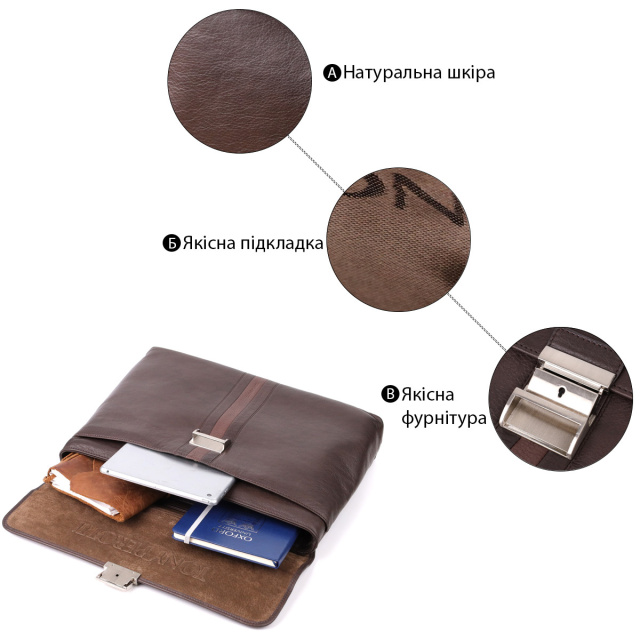 - усередині додаткові кишеньки для телефону, карт та канцтоварів;