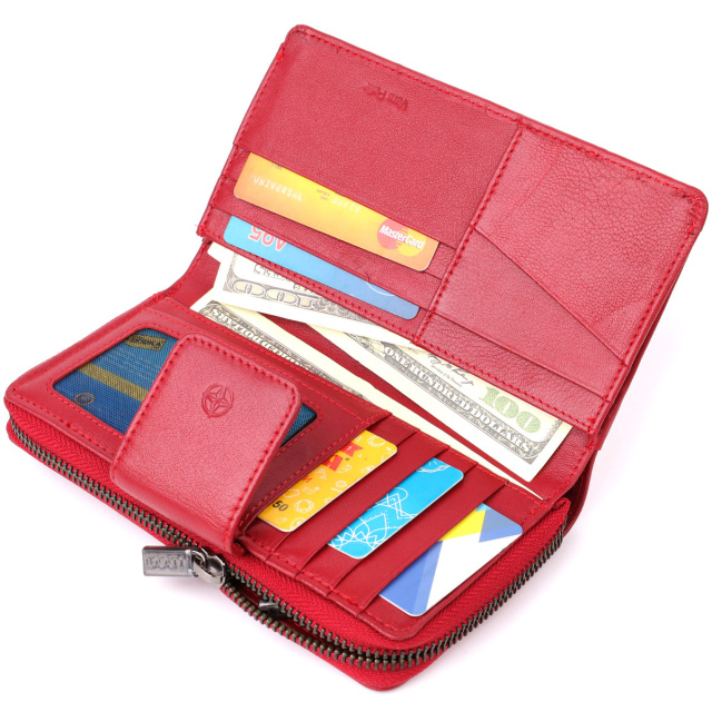 - практичний та стильний аксесуар для щоденного використання. Яскраве портмоне червоного кольору виконане з натуральної шкіри і відрізняється продуманою організацією внутрішнього простору. Модель розрахована на зберігання купюр у розкладеному вигляді, що забезпечує додатковий комфорт у використанні. Якісна брендована фурнітура підкреслює преміальний рівень виробу, а класичний дизайн робить портмоне універсальним аксесуаром та чудовим подарунком для жінки. ОПЛАТА та ДОСТАВКА : накладний платіж з передоплатою 200 грн.Терміни відправлення : 1-3 робочих днів