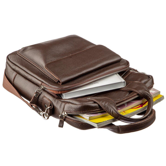 - кишеня на змійці на зворотній стороні. Якісна чоловіча сумка вертикального формату від Українського виробника. Добре підійде для вас, якщо ви перебуваєте в пошуку сумки під А4. Сумка не громіздка. М'яка, виконана зі шкіри флотар, яка дуже добре зарекомендувала себе в невибагливості у догляді і хорошою зносостійкістю. На шкірі такого плану практично не видно ні подряпин ні потертостей, які можуть з'явитися з часом після вашої експлуатації. Сумка чудово підходить під будь-який стиль. Аксесуар ви можете носити як в руках, так і через плече. Усередині сумки якісна текстильна підкладка коричневого кольору. Вся фурнітура сріблястого кольору. Якщо ви в пошуках подарунка для чоловіка - подаруйте йому сумку з натуральної шкіри. Класичний дизайн і висока якість, безсумнівно, порадують власника такого подарунка.