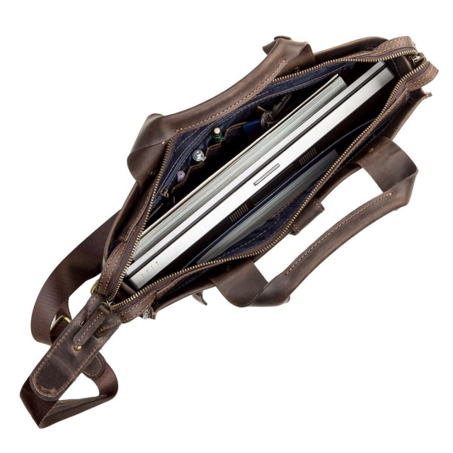 Країна виробник: Україна. Стильна, сучасна чоловіча сумка формату-А4, з двома зручними ручками, для повсякденного використання, що дозволяє носити з собою папку з документами, особисті речі. Аксесуар виконаний з натуральної вінтажної шкіри, характерними ознаками якої є: неоднорідність забарвлення і потертості, які надають виробу вишуканого, індивідуального виду. Усередині - бічна кишеня на змійці, дві невеликі кишені для телефону, дрібниць і ручок, зміцнене відділення під планшет.