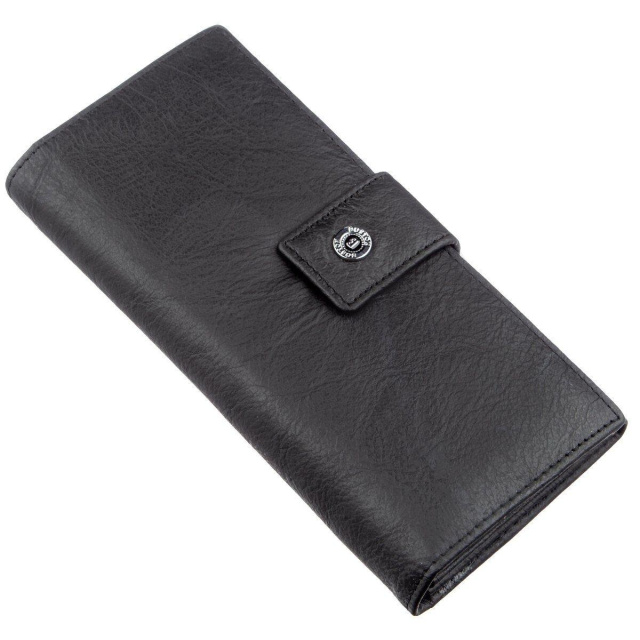 - закривається гаманець на кнопку. Шикарний жіночий гаманець з висококласної натуральної шкіри, яка порадує Вас своєю м'якою і ніжною фактурою. Колір цього гаманця чорний, який відмінно підійде для прагматичних та ділових жінок будь-якого віку. В даному аксесуарі є чотири великих відділення для купюр і документів, відділення на блискавці для різних цінностей, кишені для кредитних і візитних карток, а також на тильній стороні є відділення для монет або інших дрібниць, які вимагають швидкого доступу до них. Закривається гаманець на зручну і практичну кнопку. Упаковано виріб у білу щільну картонну коробку з фірмовим логотипом. ОПЛАТА та ДОСТАВКА : накладний платіж з передоплатою 200 грн.Терміни відправлення : 1-3 робочих днів