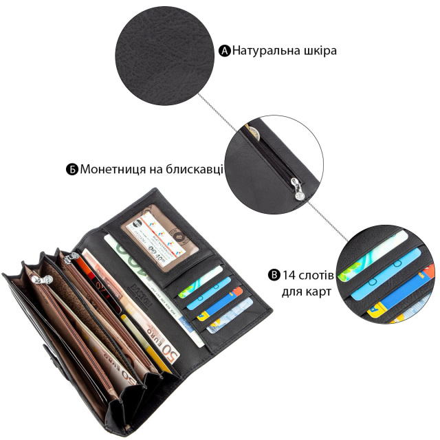 - жіночий гаманець з натуральної шкіри;