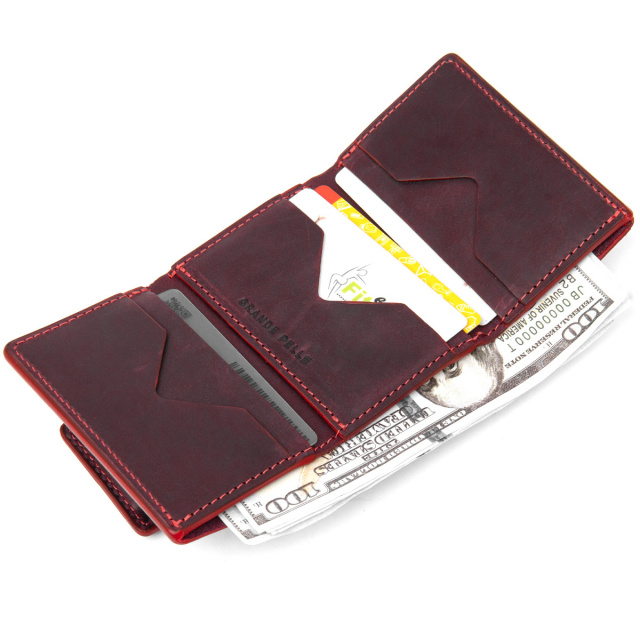 Практичне і дуже стильне портмоне з натуральної шкіри в елегантному бордовому кольорі. Має красиву фактуру з ефектом старовини, що дуже модно сьогодні. Всередині є 6 окремих слотів для візитних і кредитних карт, а також одне містке відділення для банкнот. Упаковка - фірмовий чохол. ОПЛАТА та ДОСТАВКА : накладний платіж з передоплатою 200 грн.Терміни відправлення : 1-3 робочих днів