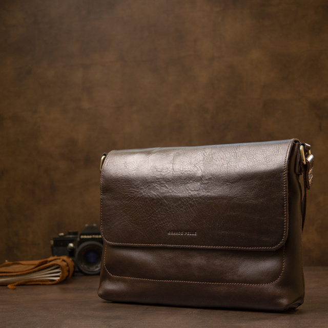 Прямокутна чоловіча сумка для чоловіків будь-якого віку. Виготовлена з зносостійкої натуральної шкіри. Колір виробу - коричневий з шоколадним відтінком. Має красиву і гладку фактуру. Усередині помістяться документи, планшет, папери формату А4 та інше. Ремінь зроблений в комбінації шкіри та текстилю, що, безсумнівно, продовжить термін його експлуатації. ОПЛАТА та ДОСТАВКА : накладний платіж з передоплатою 200 грн.Терміни відправлення : 1-3 робочих днів