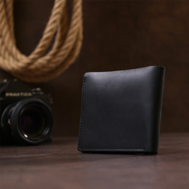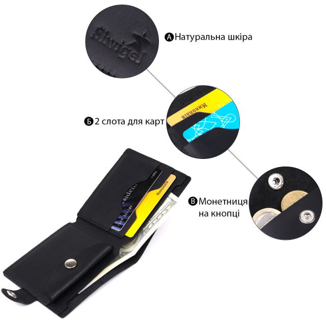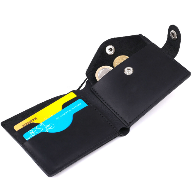 - монетниця на кнопці. Невеликий чоловічий гаманець з вінтажної шкіри високої якості та відмінними характеристиками. Має містке основне відділення для купюр, слоти для кредитних та візитних карток та монетницю на блискавці. Такий гаманець легко поміститься в сумку будь-якого розміру або кишеню. Закривається виріб на хлястик із кнопкою, що дуже зручно та практично. ОПЛАТА та ДОСТАВКА : накладний платіж з передоплатою 200 грн.Терміни відправлення : 1-3 робочих днів