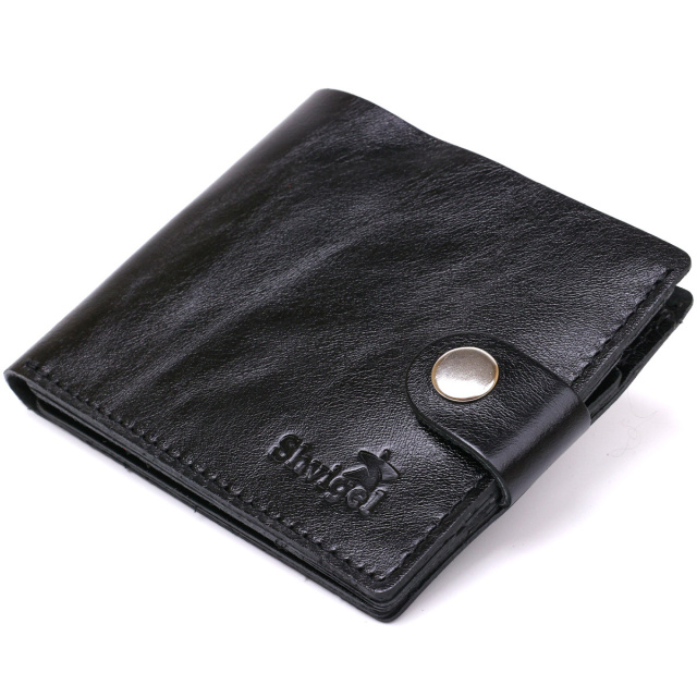 - монетниця на кнопці. Універсальне чоловіче портмоне у два складання для шанувальників лаконічних та негроміздких речей. Виконано з натуральної шкіри високої якості та відмінною стійкістю до зношування. Усередині є містке відділення для купюр, слоти для пластикових карток та невелика монетниця на кнопці. Колір виробу – чорний із легким переливом, фактура – гладка. ОПЛАТА та ДОСТАВКА : накладний платіж з передоплатою 200 грн.Терміни відправлення : 1-3 робочих днів
