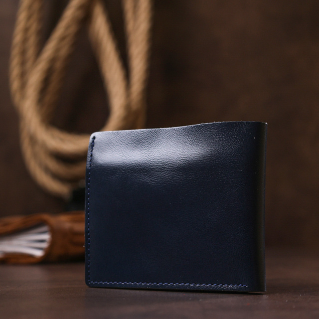 - монетниця на кнопці. Компактне стильне портмоне в стильному акуратному дизайні. Виконаний аксесуар із натуральної шкіри високої якості та підвищеною стійкістю до зносу. Усередині є просторе основне відділення на всю довжину, кишені для пластикових карток та монетниця на кнопці. Колір виробу темно-синій, фактура гладка. ОПЛАТА та ДОСТАВКА : накладний платіж з передоплатою 200 грн.Терміни відправлення : 1-3 робочих днів
