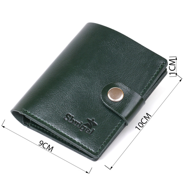 - монетниця на кнопці. Красиве стильне портмоне в два додавання від українського виробника. Матеріал виготовлення – натуральна шкіра із відмінними експлуатаційними характеристиками. Колір виробу – темно-зелений з невеликим блиском, фактура – гладка та приємна на дотик. Усередині помістяться купюри, пластикові картки та монети. ОПЛАТА та ДОСТАВКА : накладний платіж з передоплатою 200 грн.Терміни відправлення : 1-3 робочих днів