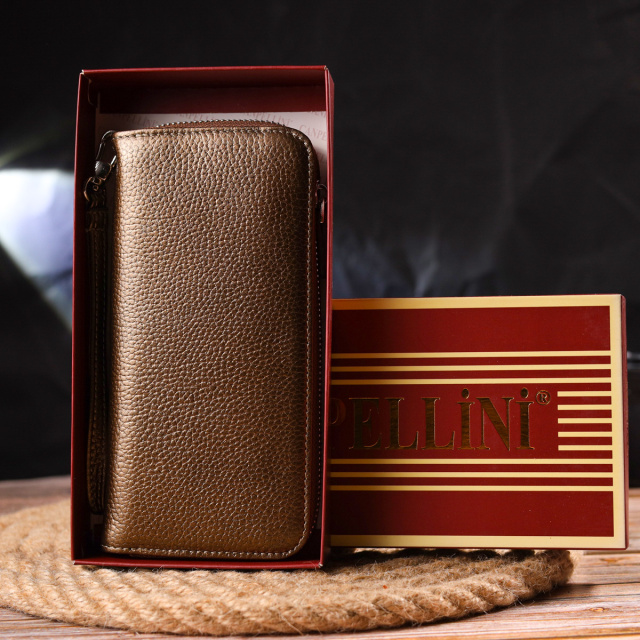 - гаманець упакований у фірмову коробочку. Дивовижний жіночий гаманець, з натуральної шкіри коричневого кольору з ледь вловимим золотавим блиском. Аксесуар має три основні відділення, в які поміщаються купюри всіх номіналів, дві перегородки, одна з них на блискавці, вісім кишень для карток, дві прилеглі кишені та знімний кистьовий ремінь. Закривається аксесуар на блискавку. Відмінний аксесуар, надійний виробник, який прослужить дуже довго. ОПЛАТА та ДОСТАВКА : накладний платіж з передоплатою 200 грн.Терміни відправлення : 1-3 робочих днів