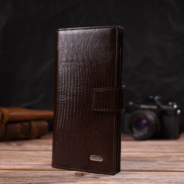 - гаманець упакований у фірмову коробочку. Вертикальний чоловічий гаманець із натуральної фактурної шкіри з тисненням. Аксесуар має одне основне відділення, в яке розміщуються купюри всіх номіналів, п'ятнадцять кишень для карток, кишеня під сіточкою для документів, дві прилеглі кишені та монетницю. Закривається аксесуар навпіл шкіряним хлястиком на кнопку. Запакований гаманець картонну коробку. ОПЛАТА та ДОСТАВКА : накладний платіж з передоплатою 200 грн.Терміни відправлення : 1-3 робочих днів