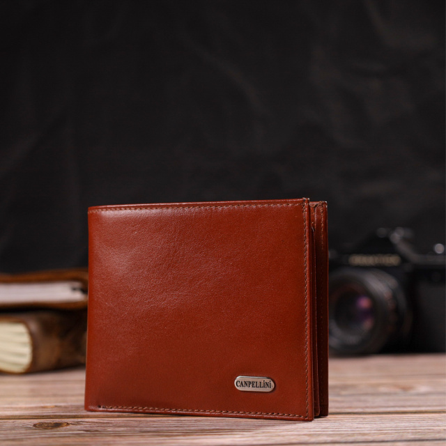 - гаманець упакований у фірмову коробочку. Практичний чоловічий гаманець із натуральної гладкої шкіри. Аксесуар має одне основне відділення з тканинною перегородкою, в яке поміщаються купюри всіх номіналів, шість кишень для карток, кишеня під сіточкою для пропуску, одна прихована кишеня і монетницю. Закривається аксесуар навпіл, без застібки. На лицьовій стороні, у правому нижньому куті металевий логотип компанії виробника. Купуючи шкіряний аксесуар цієї фірми, собі чи на подарунок, будьте певні, що він прослужить Вам не один рік. ОПЛАТА та ДОСТАВКА : накладний платіж з передоплатою 200 грн.Терміни відправлення : 1-3 робочих днів