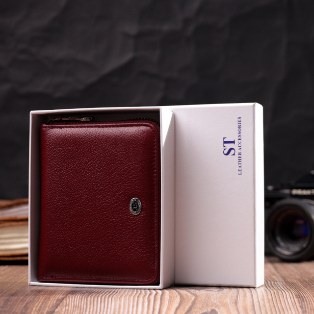 - закривається на блискавку. Стильне портмоне для жінок середнього розміру із натуральної шкіри найвищої якості. Аксесуар складається з двох містких відділень для купюр, шести осередків для карт, чотирьох прихованих кишень, прозорої кишені та кишені для монет. Зовні виріб прошитий рівним рядком по краю і прикрашений металевим логотипом компанії виробника, який розміщений вгорі посередині. Портмоне доповнено надійною фурнітурою та міцною підкладкою. Укомплектований гаманець у фірмову картонну коробку білого кольору. Виріб стане ідеальним подарунком для дівчини будь-якого віку.