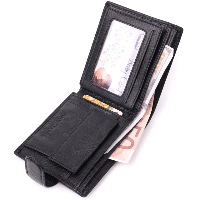 - закривається хлястиком на кнопку. Відмінний гаманець з металевим логотипом виробника для чоловіків, які цінують якість та практичність. Аксесуар з натуральної відмінної шкіри, він складається з двох містких відділень для купюр, кишені на блискавці, двох кишень під плівкою, трьох осередків для карт, двох прихованих кишень та кишені для монет. Портмоне доповнено надійною фурнітурою та міцною підкладкою. Запакований гаманець у фірмову картонну коробку білого кольору. ОПЛАТА та ДОСТАВКА : накладний платіж з передоплатою 200 грн.Терміни відправлення : 1-3 робочих днів