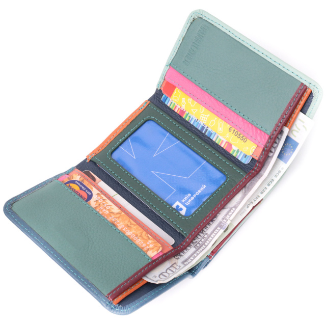 - закривається в три складання клапаном на магніт. Місткий жіночий гаманець середнього розміру із натуральної шкіри. Відмінна риса цього гаманця двокольорова зовнішня частина та багатобарвна внутрішня частина. Дана модель потрійного додавання, яка закривається на клапан з магнітом. Усередині є два відділення для купюр, монетниця, п'ять слотів під пластикові карти, одне віконце для фото, а також два приховані відділення. Відмінний функціонал та зручний розмір створює ідеальну модель гаманця для повсякденного використання. ОПЛАТА та ДОСТАВКА : накладний платіж з передоплатою 200 грн.Терміни відправлення : 1-3 робочих днів