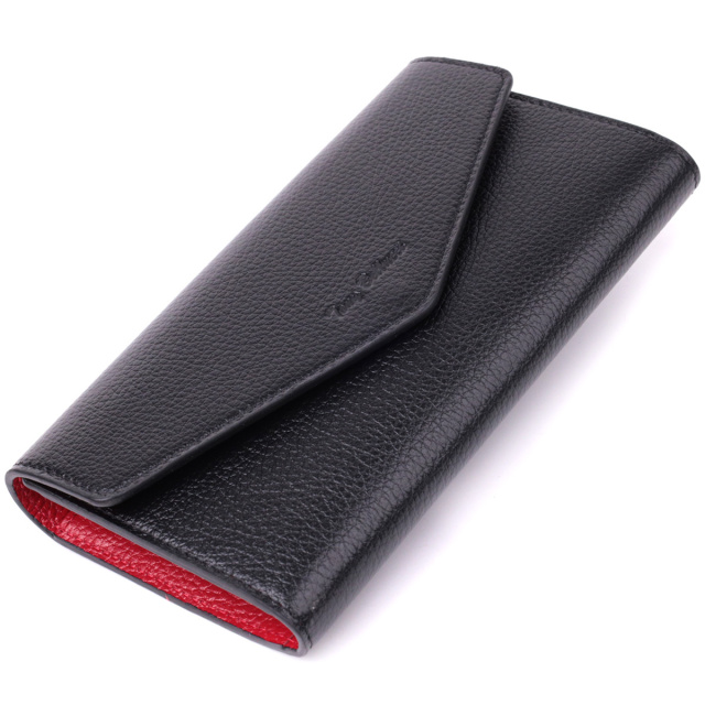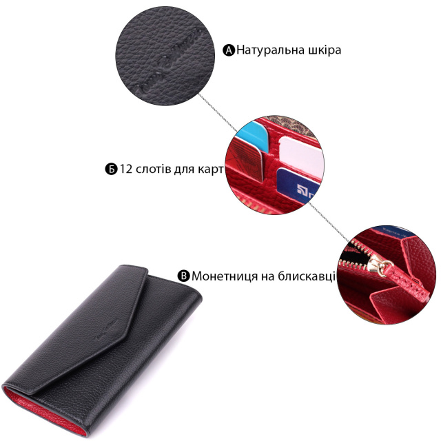 - гаманець упакований у фірмову коробку. Місткий гаманець для жінок з натуральної шкіри, у комбінації з двох кольорів чорного зовні та червоного всередині. Аксесуар складається з двох широких відділень для купюр, дванадцяти осередків для пластикових карток, двох прилеглих кишень та монетниці на блискавці. У виробі використано якісну фурнітуру золотистого кольору. Закривається гаманець трикутним клапаном на кнопку. Аксесуар упакований у фірмову коробочку. Вироби з натуральної шкіри завжди будуть чудовим подарунком для близької людини. ОПЛАТА та ДОСТАВКА : накладний платіж з передоплатою 200 грн.Терміни відправлення : 1-3 робочих днів