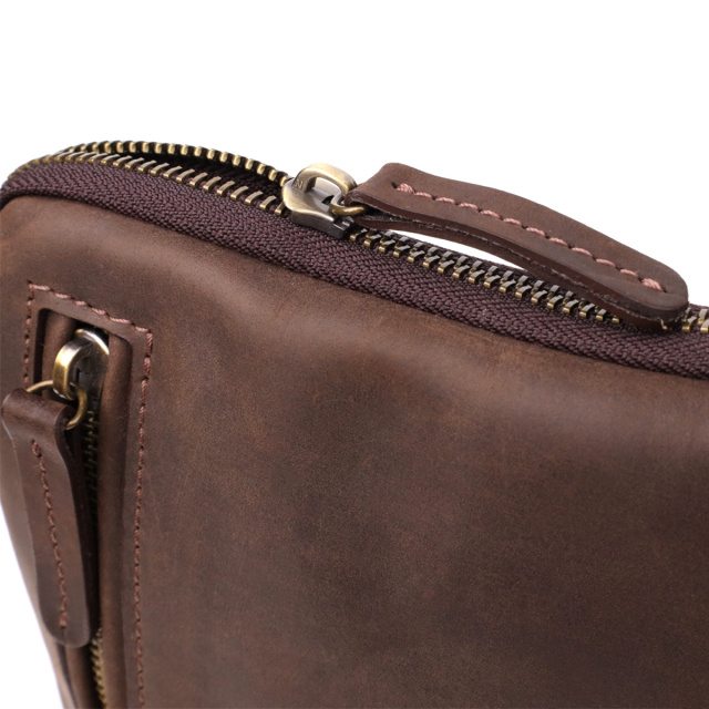 Особливості: - одне основне відділення, що закривається на блискавку; - всередині: кишеня на блискавці, відкрита кишеня та осередок для кредитних карток; - зовні: вертикальна кишеня на блискавці на лицьовій стороні та кишеня на блискавці на тильній стороні; - незнімний регульований текстильний ремінь; - фурнітура кольору темне срібло. Стильна чоловіча вертикальна сумка виконана з натуральної коричневої вінтажної шкіри, яка згодом набуває благородного відтінку та шарму. Компактний розмір та продумане внутрішнє наповнення роблять аксесуар практичним та зручним для повсякденного використання.