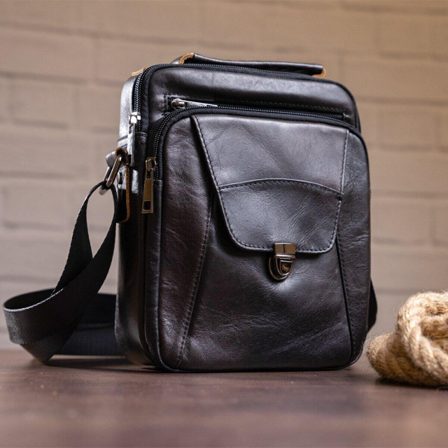 - регульований текстильний ремінець на плече. Компактна чоловіча сумка з натуральної шкіри класичного чорного кольору. Всередині - щільна текстильна підкладка. Сумка стане ідеальним помічником чоловікові на кожен день. Виріб створено для чоловіків, які цінують якість і компактний розмір. З нею буде також дуже зручно ходити на роботу або зустрічі. Виріб стане чудовим подарунком для будь-якого чоловіка. ОПЛАТА та ДОСТАВКА : накладний платіж з передоплатою 200 грн.Терміни відправлення : 1-3 робочих днів