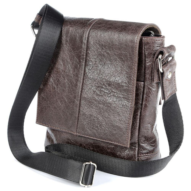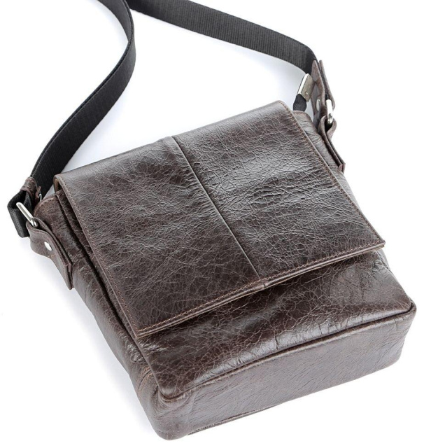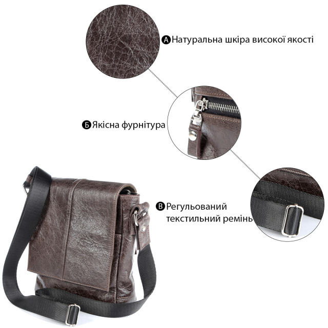 Країна виробник: Україна. Оригінальна чоловіча сумка з натуральної високоякісної вінтажної шкіри. Колір фурнітури: срібло. На задній зовнішній стороні знаходиться відділення на блискавці, в яке можна помістити речі першої необхідності. Сумка закривається за допомогою клапана на двох прихованих магнітах і блискавкою. Під клапаном розташована накладна кишеня. Сумка носитися через плече за допомогою регульованого текстильного плечового ременя. Такий аксесуар є чудовим рішенням для подарунка чоловікові до будь-якого свята. Всередині: