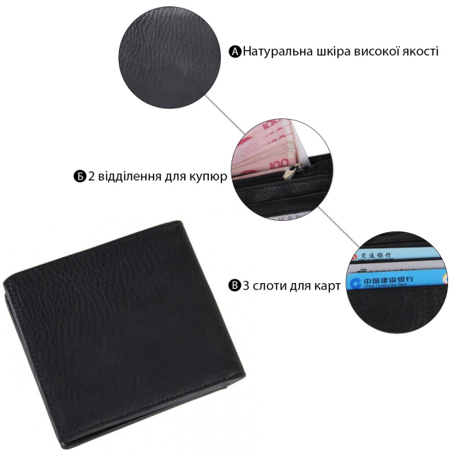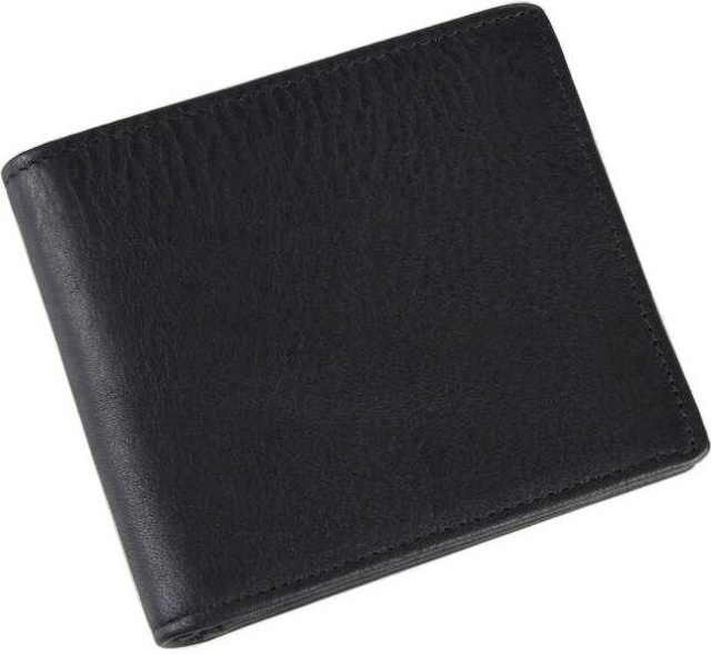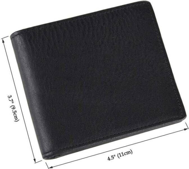 Горизонтальний чоловічий гаманець чорного кольору. Аксесуар виконаний з натуральної високоякісної фактурної шкіри приємної на дотик. Аксесуар упакований в білий пилозахисний мішок. Всередині: