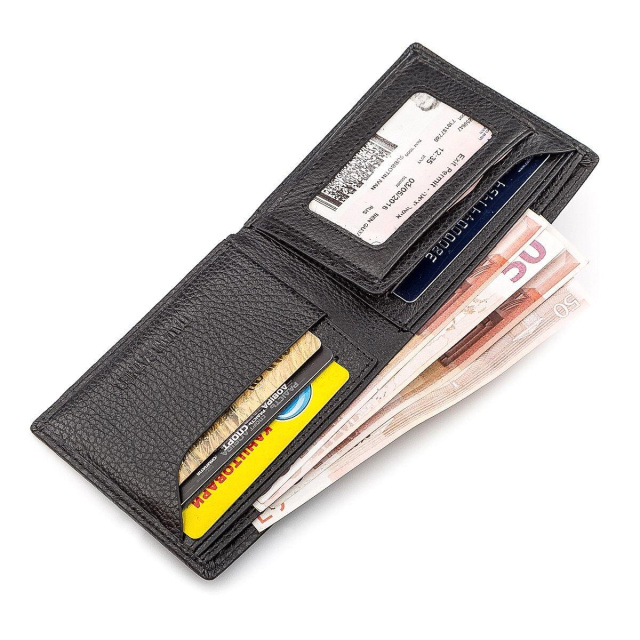 1 прозоре вікно для прав. Відмінна модель гаманця для любителів мінімалізму. Виріб не має габаритної застібки і кишені для монет. Аксесуар оснащений двома відділеннями для купюр і слотами для банківських карт. Також є куточок-тримач, кишеня прилеглого типу і прозоре відділення для фото або документів. На лицьовій стороні зображений оновлений брендовий знак. Матеріалом для виготовлення даної моделі гаманця обрана якісна, натуральна шкіра, завдяки чому аксесуар відрізняється міцністю і зносостійкістю.