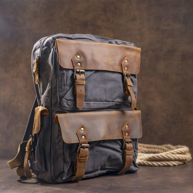 Місткий текстильний рюкзак в поєднанні з натуральною винтажною шкірою, який чудово комбінується зі стилем кежуал, спортивним або вінтажним. Якщо Ви шукали надійний рюкзак на безліч сезонів, то він перед вами. Рюкзак ідеально підійде під стандартний ноутбук. Такий рюкзак - мрія будь-якого мандрівника. Стильний рюкзак з якісного текстилю, з надійною фурнітурою, стане невід'ємним помічником, як у повсякденному житті, так і в подорожах. ОПЛАТА та ДОСТАВКА : накладний платіж з передоплатою 200 грн.Терміни відправлення : 1-3 робочих днів
