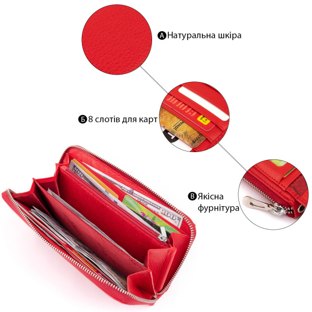 Дуже місткий гаманець-клатч яскравого червоного кольору з натуральної шкіри. Виріб виконаний з натуральної шкіри. Шкіра дуже м'яка і еластична. Наявність різноманітних відділень дає вам можливість розкласти всі ваші речі в повному порядку. Гаманець легко зможе замінити вам клатч і його буде зручно носити на зап'ясті. Модель упакована у фірмову коробку і ідеально підійде для подарунка близькій людині. ОПЛАТА та ДОСТАВКА : накладний платіж з передоплатою 200 грн.Терміни відправлення : 1-3 робочих днів