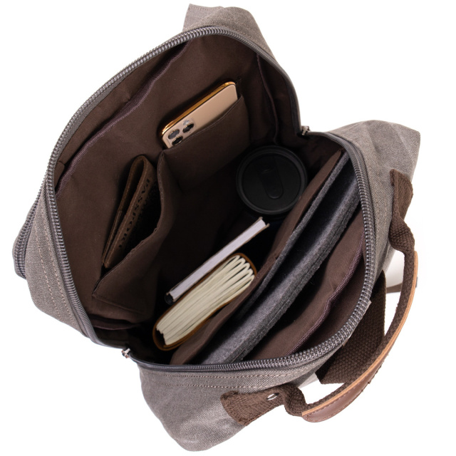 Великий рюкзак для ноутбука і подорожей. Виріб має досить кишеньок як на лицьовій стороні так і всередині. У поєднанні з якісною фурнітурою рюкзак прослужить вам далеко не один рік. Виріб дуже практичного кольору на якому практично не видно бруду. Усередині тканинна підкладка. Рюкзак стане відмінним варіантом як для ноутбука так і в подорож. Виріб має відносно легку вагу. Текстильний рюкзак - найкращий варіант у співвідношенні ціни і якості.
