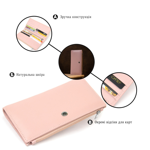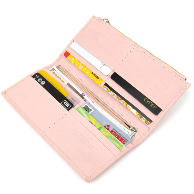 Чудовий стильний жіночий гаманець з натуральної шкіри в матовій зернистій фактурі. Має непомітний спокійний рожевий колір, який виглядає дуже вишукано і неповторно. Шкіра на дотик м'яка і приємна. У такий гаманець поміститься все, що необхідно для повсякденного використання, особливо варто відзначити 12 слотів для кредитних і візитних карток. Також порадує внутрішня кишенька на блискавці для особливо важливих дрібниць, які тепер будуть в цілісності й схоронності. ОПЛАТА та ДОСТАВКА : накладний платіж з передоплатою 200 грн.Терміни відправлення : 1-3 робочих днів