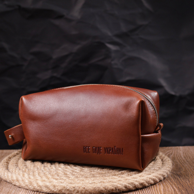 - фурнітура срібного кольору; Містка чоловіча косметичка, великого розміру, з гладкої натуральної шкіри з патріотичним тисненням "Все буде Україна". Аксесуар на всі випадки життя, його можна використовувати вдома для зберігання особистих речей, для поїздок, спорту та іншого. Виконано аксесуар із зносостійкої натуральної шкіри високої якості. Колір виробу - чорний, глянсова фактура гладка. Запакований несесер у фірмову сумку-чохол. ОПЛАТА та ДОСТАВКА : накладний платіж з передоплатою 200 грн.Терміни відправлення : 1-3 робочих днів