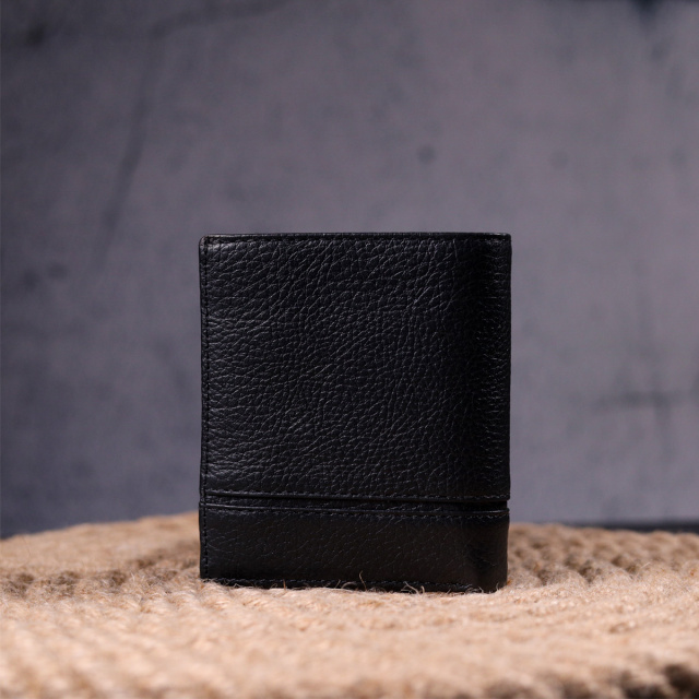 - виріб упакований у фірмову коробку. Зручний чоловічий гаманець з натуральної шкіри в класичному чорному кольорі. Усередині знаходиться два відділення для купюр, шість відділень для карт, три приховані кишені та монетниця на кнопці. Закривається гаманець у два додавання без застібки. Вироби з натуральної шкіри завжди будуть чудовим подарунком для близької людини. ОПЛАТА та ДОСТАВКА : накладний платіж з передоплатою 200 грн.Терміни відправлення : 1-3 робочих днів