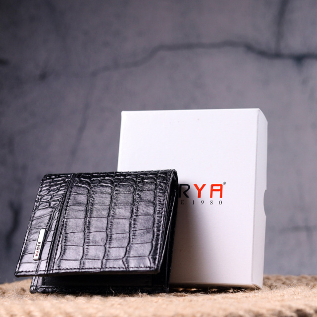- виріб упакований у фірмову коробку. Престижний чоловічий гаманець з натуральної шкіри з тисненням під крокодила в класичному чорному кольорі. Виріб має приємний блиск. Усередині знаходиться два відділення для купюр, шість відділень для карт, три приховані кишені та монетниця на кнопці. Закривається гаманець у два додавання без застібки. Вироби з натуральної шкіри завжди будуть чудовим подарунком для близької людини. ОПЛАТА та ДОСТАВКА : накладний платіж з передоплатою 200 грн.Терміни відправлення : 1-3 робочих днів