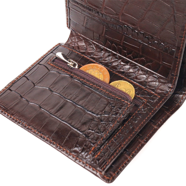 - гаманець упакований у фірмову коробочку. Компактний вертикальний гаманець для чоловіків з натуральної фактурної шкіри з тисненням під крокодила. Аксесуар має одне основне відділення, з перегородкою, в яке поміщаються купюри всіх номіналів, три відсіки для карток, монетницю на блискавці з розширювачем, дві прилеглі кишені. На зовнішній стороні металевий логотип виробника. Колір фурнітури – срібло. Шкіряний гаманець є справді потрібним подарунком на всі випадки життя. ОПЛАТА та ДОСТАВКА : накладний платіж з передоплатою 200 грн.Терміни відправлення : 1-3 робочих днів