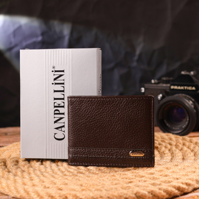 - гаманець упакований у фірмову коробочку. Відмінний затискач для купюр, із натуральної зернистої шкіри, в красивому коричневому кольорі. Аксесуар має одне основне відділення, в якому розміщуються купюри всіх номіналів, два куточки – власники для купюр, чотири осередки для кредитних карток. Закривається аксесуар на магніт. Колір фурнітури – срібло. Запакований затискач у картонну коробку. ОПЛАТА та ДОСТАВКА : накладний платіж з передоплатою 200 грн.Терміни відправлення : 1-3 робочих днів