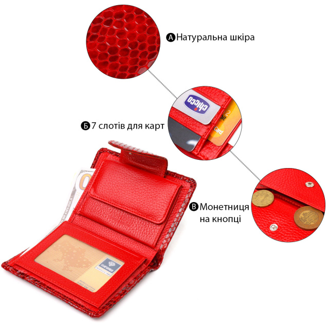 - монетниця, що закривається клапаном на кнопку;