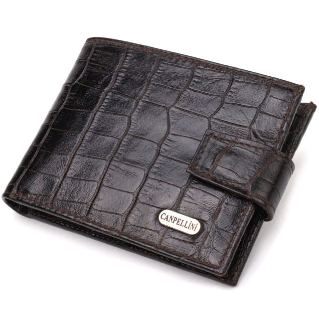 - гаманець упакований у фірмову коробочку. Модний чоловічий гаманець з натуральної фактурної шкіри з тисненням під крокодила. Аксесуар має одне основне відділення з перегородкою, в яке поміщаються купюри всіх номіналів, дев'ять кишень для карток, дві з яких під сіточкою, монетниця та дві прилеглі кишені. Закривається аксесуар хлястиком на кнопку. Колір фурнітури – срібло. Ви легко зможете помістити його в кишеню штанів чи маленьку сумку. Запакований гаманець картонну коробку. Шкіряний гаманець є чудовим подарунком для рідних та близьких людей. ОПЛАТА та ДОСТАВКА : накладний платіж з передоплатою 200 грн.Терміни відправлення : 1-3 робочих днів